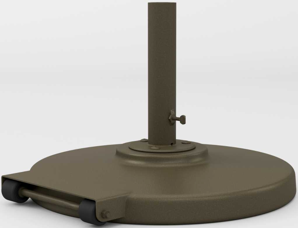 Brown Jordan offers outdoor umbrella bases that accommodate a variety of pole sizes for freestanding applications. This Standard Umbrella stand with wheels weighs 95 pounds and supports umbrellas with 2" poles.Read More