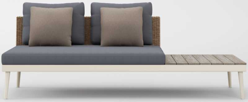 Its distinct matte Resinweave is handwoven and offered exclusively to the 20TWENTY collection in two colors: Blonde and Blue. The Armless Loveseat with Left Driftwood End Table can easily be joined together with sectional units with a clip-on connector for ease in planning.