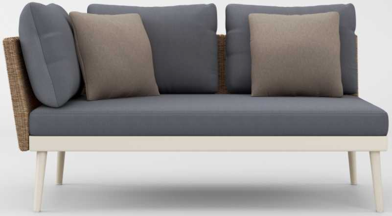 Its distinct matte Resinweave is handwoven and offered exclusively to the 20TWENTY collection in two colors: Blonde and Blu. TheLeft Arm Loveseat can easily be joined together with sectional units with a clip-on connector for ease in planning.