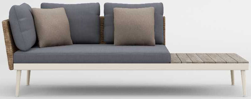 Its distinct matte Resinweave is handwoven and offered exclusively to the 20TWENTY collection in two colors: Blonde and Blu. The Right Arm Loveseat with Driftwood End Table can easily be joined together with sectional units with a clip-on connector for ease in planning.