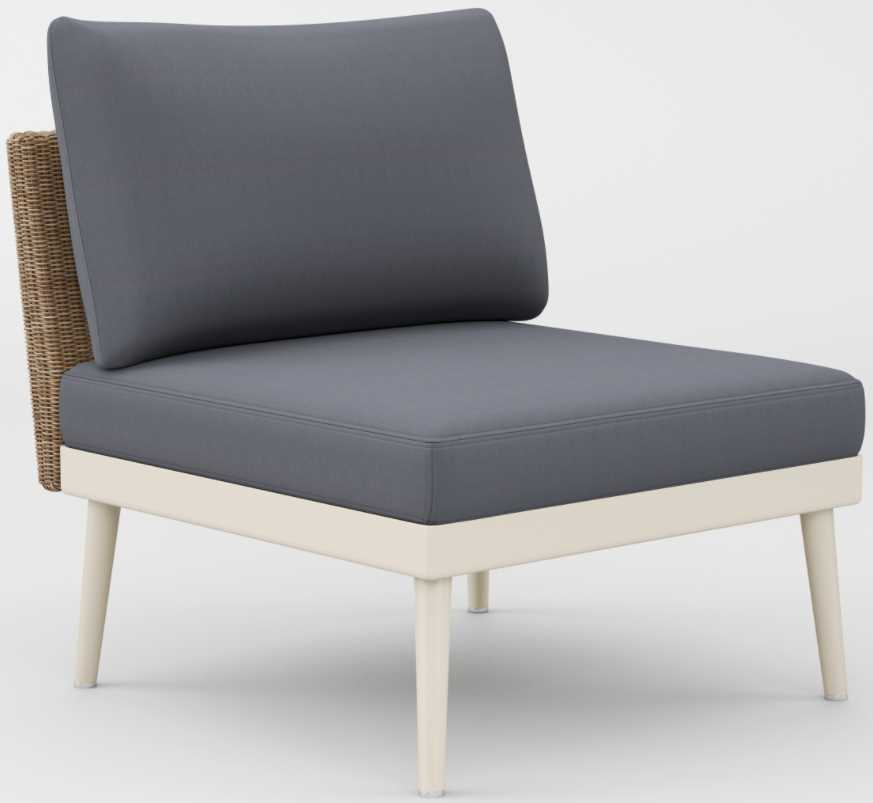 Its distinct matte Resinweave is handwoven and offered exclusively to the 20TWENTY collection in two colors: Blonde and Blu. The Armless Lounge may float independently or be joined together with sectional units with a clip-on connector.