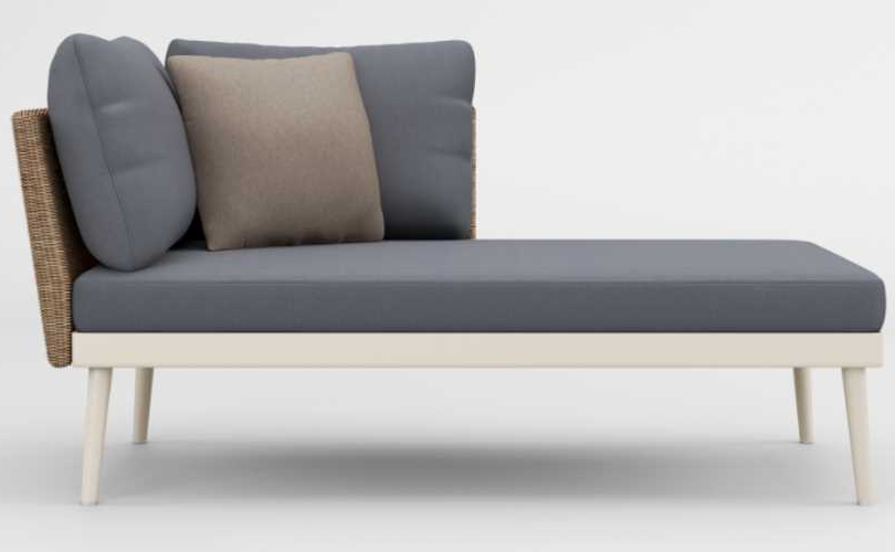 Its distinct matte Resinweave is handwoven and offered exclusively to the 20TWENTY collection in two colors: Blonde and Blu. The Left Chaise can easily be joined together with sectional units with a clip-on connector for ease in planning.