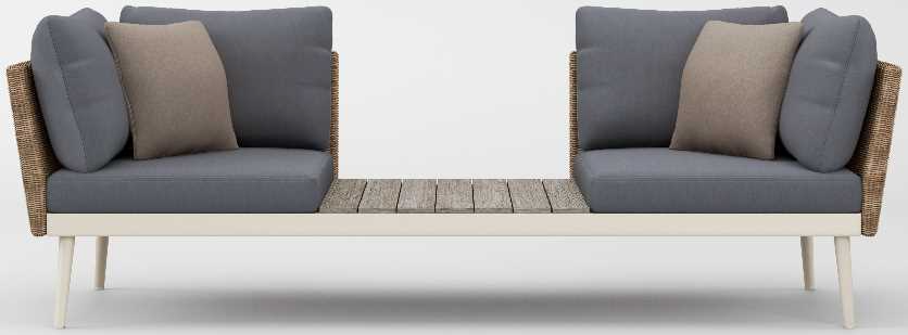 Its distinct matte Resinweave is handwoven and offered exclusively to the 20TWENTY collection in two colors: Blonde and Blu. The Tete-A-Tete may float independently or be joined together with sectional units with a clip-on connector.