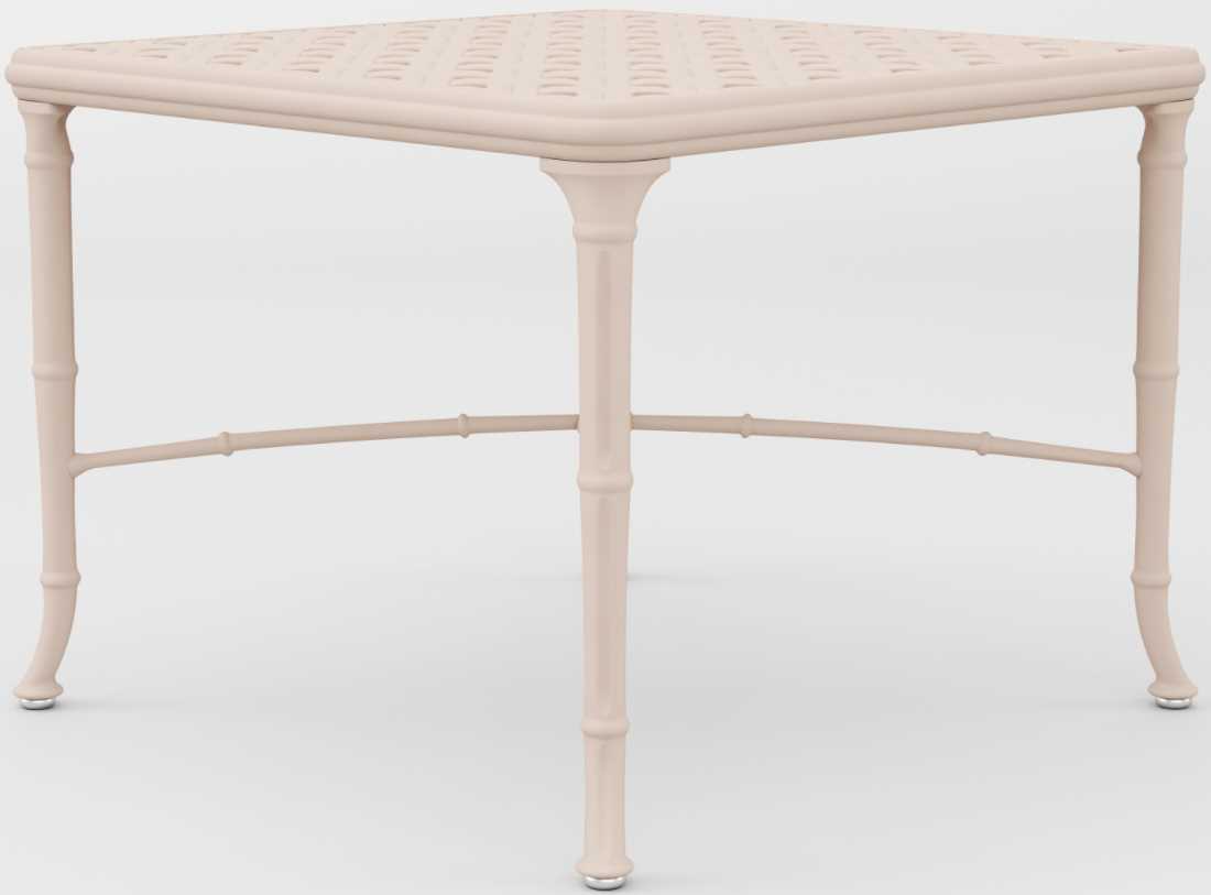 Timeless and sturdy cast aluminum corner table with woven bamboo aesthetic featuring a lower x-stretcher that continues the decorative bamboo fashion throughout the table base. Several custom finish options available with powder-coated technique to ensure long-life perfection.Read More