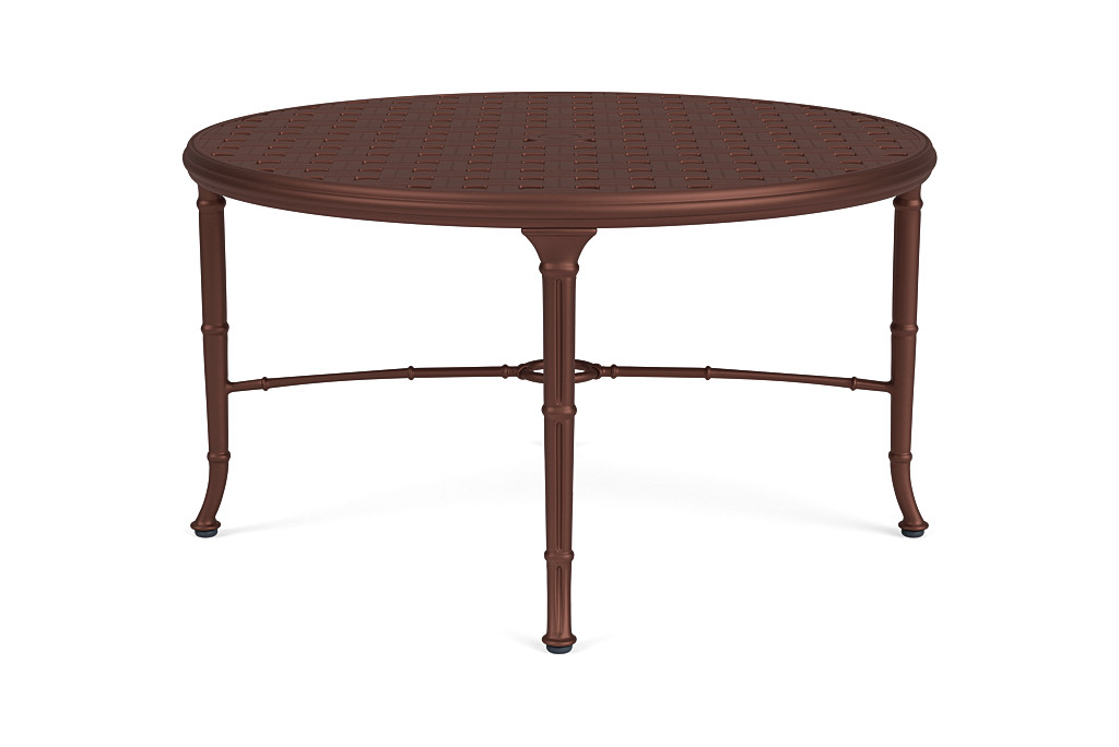 This Cast Top Chat Table encourages conversation with family or guests in smaller, more intimate, spaces. Calcutta features an elegant and detailed aluminum weave top is hand finished to deliver jewel-like product. Lower x-stretcher continues the decorative bamboo fashion throughout the base.Read More
