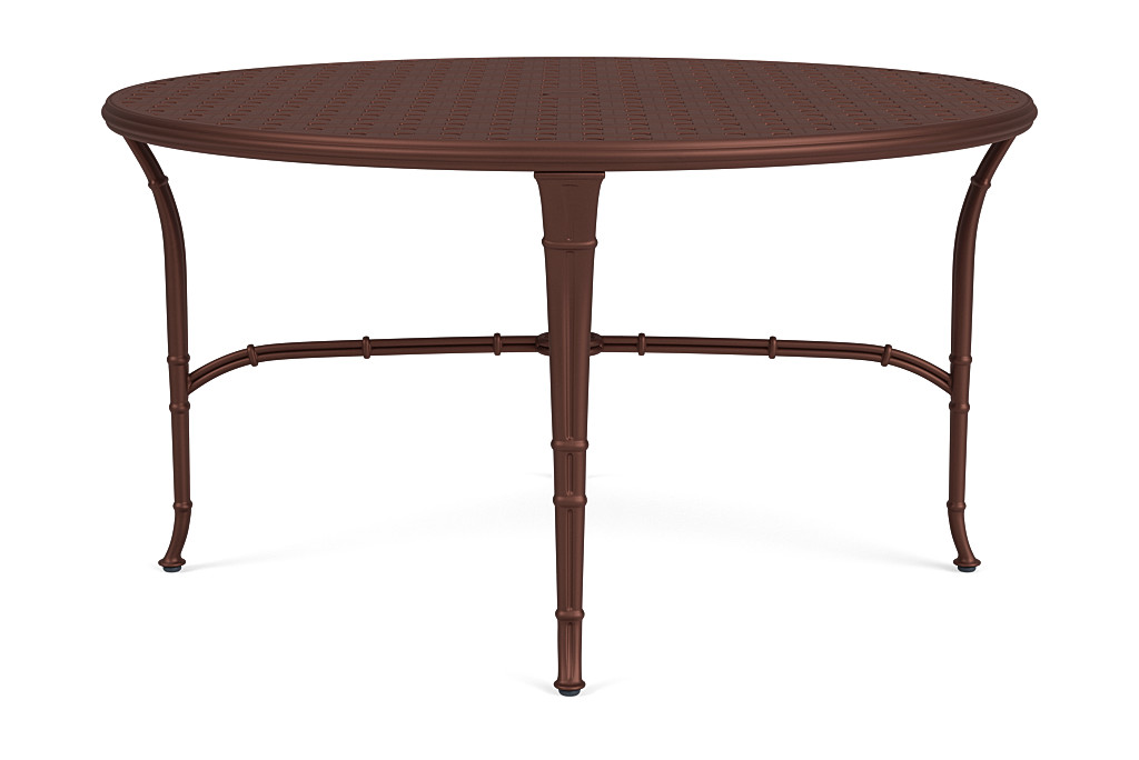 A popular choice for casual entertaining, the Calcutta Round Cast Top Dining Table provides ample space for small gatherings. The lower x-stretcher arches across the base, continuing the decorative bamboo design. Available with or without umbrella holes to accommodate shade architectures. The table comes with a matching cast umbrella hole plug.Read More