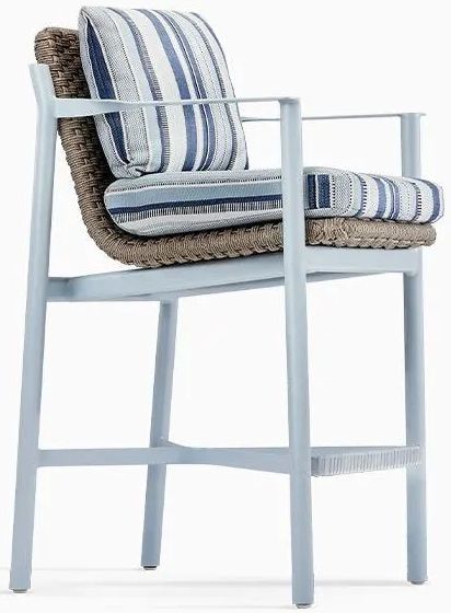 A low-profile, angular aluminum frame fabricated from extruded, custom cast, and solid metal elements cradles the Bar Stool’s bucket seat, suspending it as if in mid-air. In addition to highlighting Brown Jordan’s unrivaled expertise in metal craftsmanship, the design showcases our innovative use of woven rope. This durable, heritage material - “a modern updated look to wicker” - is handwoven onto the actual frames by skilled artisans in Indonesia. Completing the look, impeccably tailored cushions hug the curves of the rope seat and cosset the body in luxury.