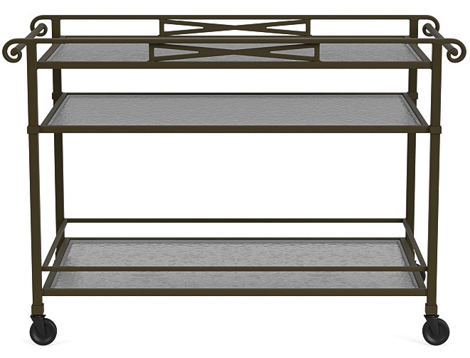 The Venetian Serving Cart features an x-back and cross-stretcher, both framed by elegantly scaled rectangular lines. The Venetian Serving Cart easily accents eclectic living scapes that require a more formal design presence, delivering 3 glass tops for added versatility. Not suitable for contract use.Read More