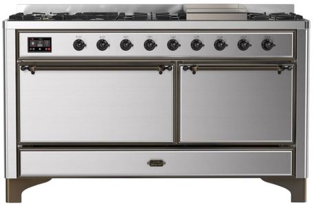 The Majestic 60" dual fuel range combines the classic Italian style and cutting-edge technology. This range feature 9 gas burners and a griddle, equipped with a total black brass flame spreader with non-stick nanotechnological coating, dual 3.5 + 2.3 cu. ft. total oven capacity, 4.3" full touch oven control display and easy clean enamel oven cavity.Read More