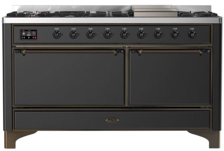 The Majestic 60" dual fuel range combines the classic Italian style and cutting-edge technology. This range feature 9 gas burners and a griddle, equipped with a total black brass flame spreader with non-stick nanotechnological coating, dual 3.5 + 2.3 cu. ft. total oven capacity, 4.3" full touch oven control display and easy clean enamel oven cavity.Read More
