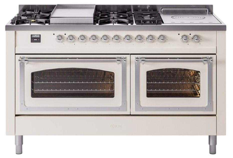 Ilve® Nostalgie II Noblesse 60'' Antique White Pro Style Dual Fuel Range with Chrome Trim