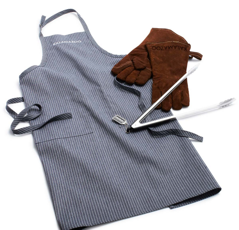 Precision tongs, premium apron and long-cuff protective grilling gloves. Â The ultimate grill deserves the ultimate grilling accessories. Enjoy this custom set of Kalamazoo grilling tools when you are cooking your backyard favorites. Â