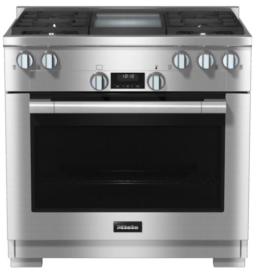 36 inch range All Gas with DirectSelect, Twin convection fans and M Pro dual stacked burners. Turn dial operation with display - DirectSelect. Maximum variety - four powerful burners and a griddle. Fast heating time and even heat distribution – TwinPower. Easy clean-up - Self-cleaning and dishwasher-safe grates. Easy opening & closing - noise and vibration absorbers.Read More