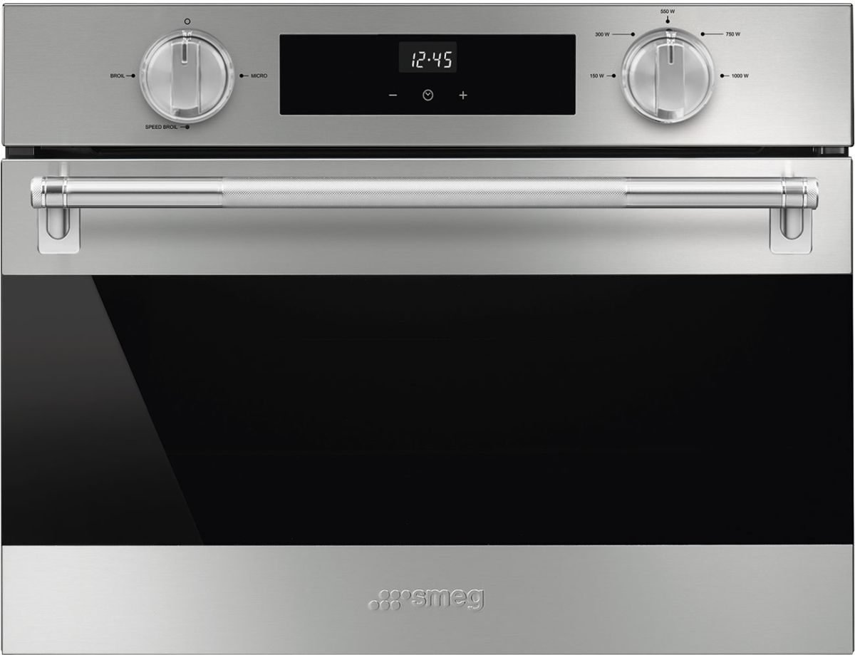 The Smeg 24" Fingerproof Stainless Steel Oven/Microwave Combo Electric Wall Oven has Microwave energy that shortens cooking times dramatically and produces energy savings. The use of the grill results in a perfect browning of the surface of the food. The action of microwaves allows instead of cooking in a short time the internal part of the food.Read More