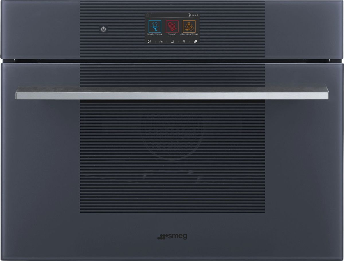The Smeg 24" Neptune Gray Oven/Micro Combo Electric Wall Oven has 150 automatic recipes for perfect results, Cushioned closing system, and Facilitated cavity cleaning due to special pyrolytic enamel. The electronic control manages temperatures in the best possible way and promotes uniformity of heat. Cooking is preceded by the preheating phase which allows the cooking compartment to reach the set temperature. This option reduces the time by up to 50%.Read More