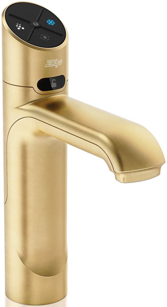 Zip HydroTap Chilled, Sparkling for Residential and Small Commercial - Kitted Base Module with 1.5 lb. CO2 and Regulator with Classic Plus Tap - Brushed Gold. Kit includes tap (01043499) and Command Center (01048500).Read More